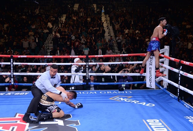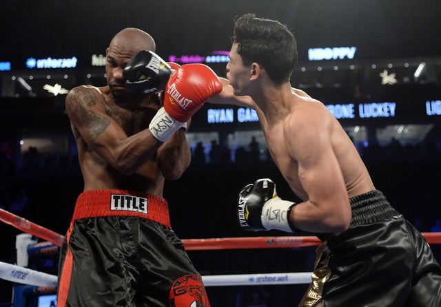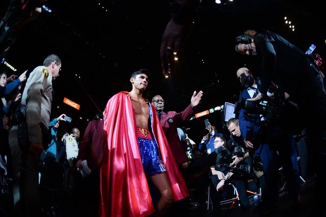Ryan Garcia (blue trunks) enters the arena to face Romero Duno (not pictured) for their WBC silver and NABO lightweight title bout at MGM Grand Garden Arena. Garcia won via first round TKO.Ryan Garcia (blue trunks) knocks out Romero Duno (black trunks) during their WBC silver and NABO lightweight title bout at MGM Grand Garden Arena. Garcia won via first round TKO.Ryan Garcia (blue trunks) and Romero Duno (black trunks) box during their WBC silver and NABO lightweight title bout at MGM Grand Garden Arena. Garcia won via first round TKO.Ryan Garcia (blue trunks) knocks out Romero Duno (black trunks) during their WBC silver and NABO lightweight title bout at MGM Grand Garden Arena. Garcia won via first round TKO.Ryan Garcia (blue trunks) celebrates after knocking out Romero Duno (not pictured) in their WBC silver and NABO lightweight title bout at MGM Grand Garden Arena. Garcia won via first round TKO.Ryan Garcia (black/gold trunks) reacts after defeating Tyrone Luckey (not pictured) in their lightweight bout at T-Mobile Arena. Garcia won via second round TKO.Ryan Garcia (black/gold trunks) and Tyrone Luckey (black/red trunks) box during their lightweight bout at T-Mobile Arena. Garcia won via second round TKO.