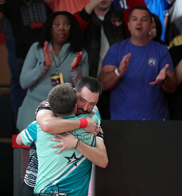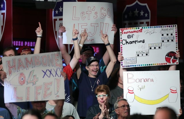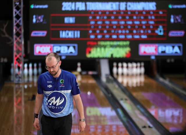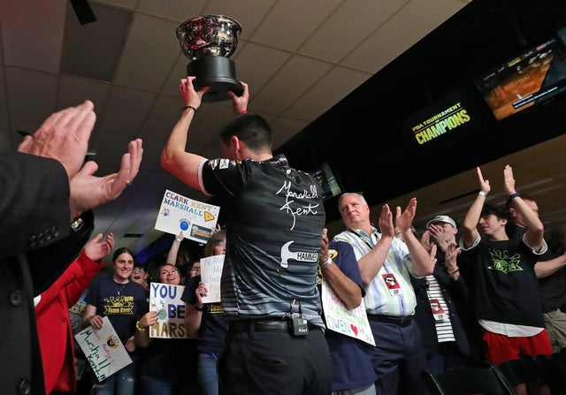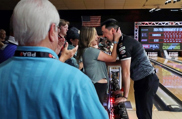 Marshall Kent throws his ball as he takes on Anthony Simonsen (not pictured) during the final round of the PBA Tournament of Champions at AMF Riviera Lanes, Sunday, April 28, 2024, in Akron, OhioMarshall Kent throws his ball as he takes on Matt Ogle (not pictured) during the final round of the PBA Tournament of Champions at AMF Riviera Lanes, Sunday, April 28, 2024, in Akron, OhioMarshall Kent reacts to his split during the final round of the PBA Tournament of Champions at AMF Riviera Lanes, Sunday, April 28, 2024, in Akron, OhioEJ Tackett reacts after failing to pick up a spare in the tenth frame sealing his fate against Marshall Kent during the 2024 PBA Tournament of Champions at AMF Riviera Lanes, Sunday, April 28, 2024, in Akron, OhioJason Sterner competes against Marshall Kent during the PBA Tournament of Champions at AMF Riviera Lanes, Sunday, April 28, 2024, in Akron, OhioA Matt Ogle fan shows support with a sign as he warms up during the PBA Tournament of Champions at AMF Riviera Lanes, Sunday, April 28, 2024, in Akron, OhioBowling fans cheer during the final round of the PBA Tournament of Champions at AMF Riviera Lanes, Sunday, April 28, 2024, in Akron, OhioBowling fans crowd around lanes 27 and 28 at AMF Riviera Lanes as Marshall Kent works his way towards a win during the 2024 PBA Tournament of Champions, Sunday, April 28, 2024, in Akron, OhioMarshall Kent, facing, hugs Anthony Simonsen after beating him to win the 2024 PBA Tournament of Champions at AMF Riviera Lanes, Sunday, April 28, 2024, in Akron, OhioEJ Tackett watches his ball down lane 28 as he competes against Marshall Kent during the PBA Tournament of Champions at AMF Riviera Lanes, Sunday, April 28, 2024, in Akron, OhioMarshall Kent, left, watches Jason Sterner closely as he approaches the lane during the final round of the PBA Tournament of Champions at AMF Riviera Lanes, Sunday, April 28, 2024, in Akron, OhioMatt Ogle competes against Marshall Kent during the PBA Tournament of Champions at AMF Riviera Lanes, Sunday, April 28, 2024, in Akron, OhioAnthony Simonsen competes against Marshall Kent during the final round of the PBA Tournament of Champions at AMF Riviera Lanes, Sunday, April 28, 2024, in Akron, OhioMarshall Kent, center, takes a victory lap through the fans after winning the 2024 PBA Tournament of Champions at AMF Riviera Lanes, Sunday, April 28, 2024, in Akron, OhioCassandra Daleski, left, embraces her boyfriend Marshall Kent, right, after he beat Anthony Simonsen to win the 2024 PBA Tournament of Champions at AMF Riviera Lanes, Sunday, April 28, 2024, in Akron, Ohio