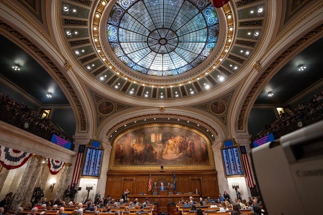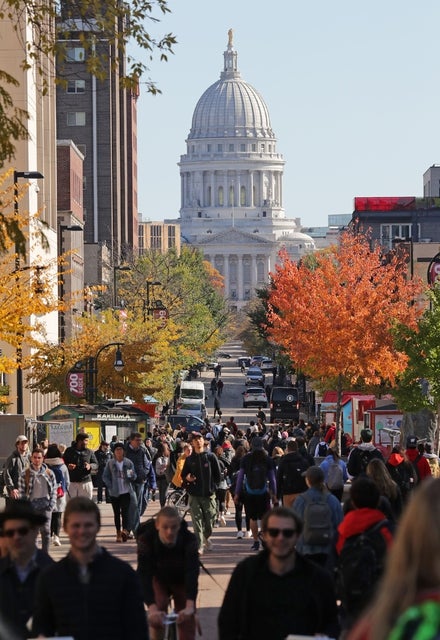 Albany CapitoGov. Tony Evers delivers his State of State address Tuesday, January 23, 2024 at the Capitol in Madison, Wisconsin. The Democratic governor laid out his priorities in front of the Republican-led LegislatureStudents walk to classes on campus along State Street with the Madison state capitol in the background at the University of Wisconsin Madison on Wednesday, Oct. 23, 2019The Wisconsin State Capitol is shown Thursday, September 14, 2023 in Madison, Wis.