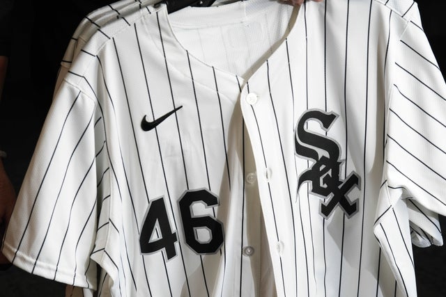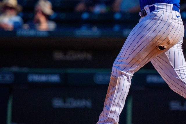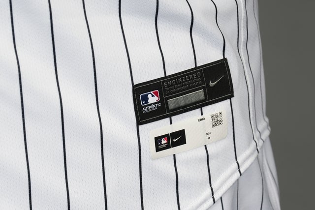 The details of a Chicago White Sox jersey during Media Day at Camelback Ranch.The details of Cleveland Guardians Nike pants during Media Day at the Cleveland Guardians Spring Training FacilityA detail view of Baltimore Orioles first baseman Ryan Mountcastle (6) (not pictured) new nike uniform poses for a photo during photo day at Ed Smith Stadium.A detailed view of a tear in the pants of Chicago Cubs infielder Jonathon Long (17) during his at bat in the eighth inning during a spring training game between the San Francisco Giants at Sloan Park.The details of a Chicago White Sox jersey during Media Day at Camelback Ranch.