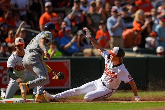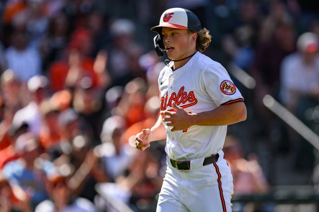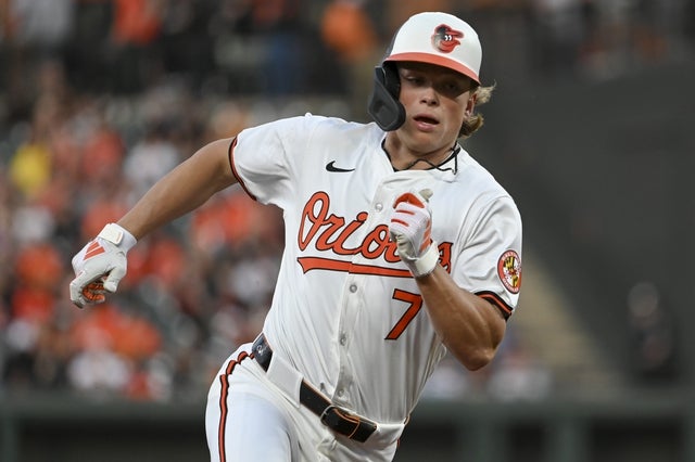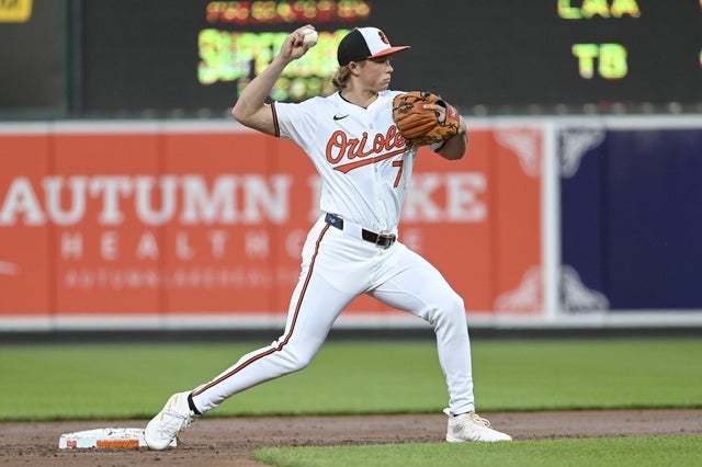 Baltimore Orioles second baseman Jackson Holliday (7) warms up in the second inning against the Minnesota Twins at Oriole Park at Camden Yards.Baltimore Orioles second baseman Jackson Holliday (7) rounds third base to score on shortstop Gunnar Henderson (not pictured) third inning single against the Minnesota Twins at Oriole Park at Camden Yards.Baltimore Orioles shortstop Gunnar Henderson (2) hits a rbi single scoring second baseman Jackson Holliday (not pictured) during the third inning against the Minnesota Twins at Oriole Park at Camden Yards.Baltimore Orioles second baseman Jackson Holliday (7) walks to home plate for a third inning at-bat against the Minnesota Twins at Oriole Park at Camden Yards.Milwaukee Brewers shortstop Willy Adames (27) slides into second base while Baltimore Orioles second base Jackson Holliday (7) catches the ball during the seventh inning at Oriole Park at Camden Yards.Baltimore Orioles second base Jackson Holliday (7) at bat during the sixth inning against the Milwaukee Brewers at Oriole Park at Camden Yards.Baltimore Orioles second base Jackson Holliday (7) hits a single during the seventh inning against the Milwaukee Brewers at Oriole Park at Camden Yards.Baltimore Orioles second baseman Jackson Holliday (7) throws to first base on a third inning double play against the Minnesota Twins at Oriole Park at Camden Yards.Baltimore Orioles second base Jackson Holliday (7) slides into third base during the seventh inning against the Milwaukee Brewers at Oriole Park at Camden Yards.Baltimore Orioles second base Jackson Holliday (7) jogs to the dugout during the seventh inning against the Milwaukee Brewers at Oriole Park at Camden Yards.Baltimore Orioles second baseman Jackson Holliday (7) reacts while holding his bat prior to the game against the Milwaukee Brewers Oriole Park at Camden Yards.Baltimore Orioles second baseman Jackson Holliday (7) reacts while holding his bat prior to the game against the Milwaukee Brewers Oriole Park at Camden Yards.Baltimore Orioles second baseman Jackson Holliday (7) adjust his hat while on the field before the game against the Milwaukee Brewers at Oriole Park at Camden Yards.Baltimore Orioles second baseman Jackson Holliday (7) takes batting practice prior to the game against the Milwaukee Brewers at Oriole Park at Camden Yards.Baltimore Orioles second baseman Jackson Holliday (7) takes batting practice prior to the game against the Milwaukee Brewers at Oriole Park at Camden Yards.Baltimore Orioles second base Jackson Holliday (7) gets his first major league base hit against the Boston Red Sox in the fifth inning at Fenway Park.Baltimore Orioles shortstop Jackson Holliday (7) runs onto the field before the start of the game against the Boston Red Sox at Fenway Park.Baltimore Orioles shortstop Jackson Holliday (7) comes off the field after warm up before the start of the game against the Boston Red Sox at Fenway Park.Baltimore Orioles shortstop Jackson Holliday (7) warms up before the start of the game against the Boston Red Sox at Fenway Park.Baltimore Orioles shortstop Jackson Holliday (7) warms up before the start of the game against the Boston Red Sox at Fenway Park.Baltimore Orioles shortstop Jackson Holliday (7) warmt up before the start of the game against the Boston Red Sox at Fenway Park.